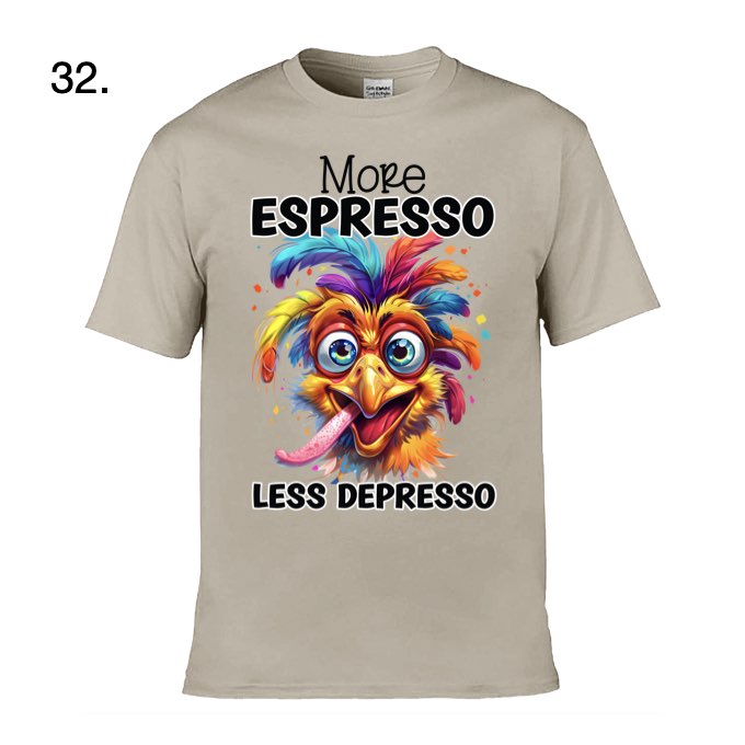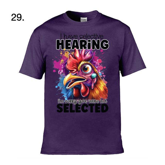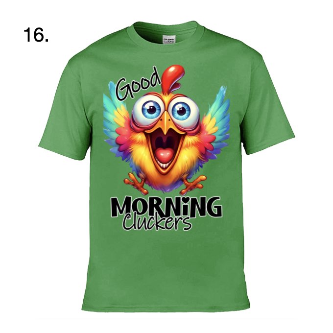 T-Shirt Colour: There are 38 colours available but only 14 to choose from online, email for more information