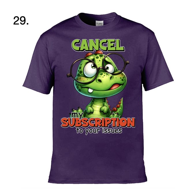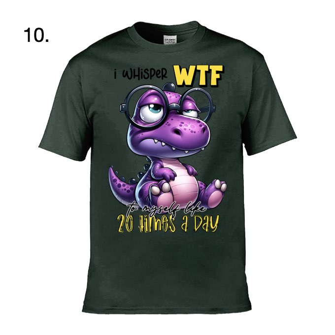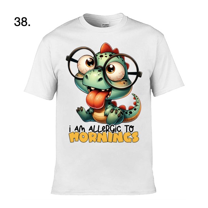 T-Shirt Colour: There are 38 colours available but only 14 to choose from online, email for more information