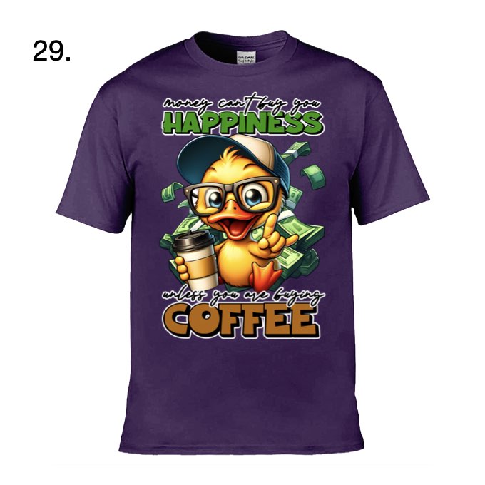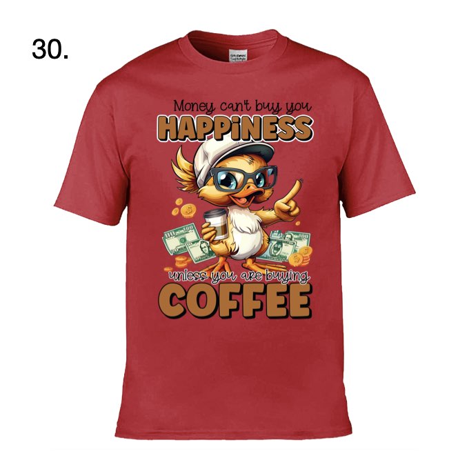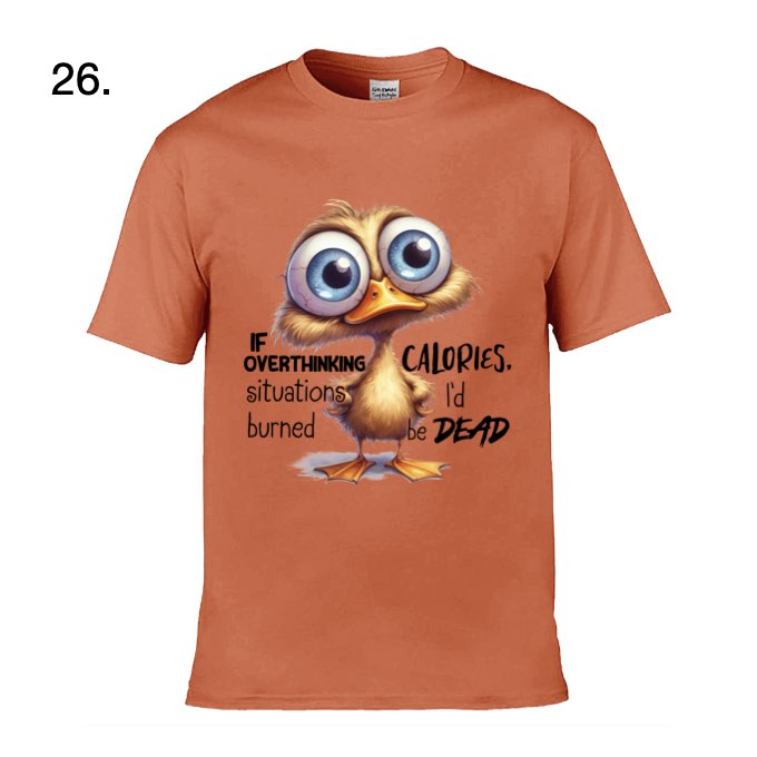 T-Shirt Colour: There are 38 colours available but only 14 to choose from online, email for more information
