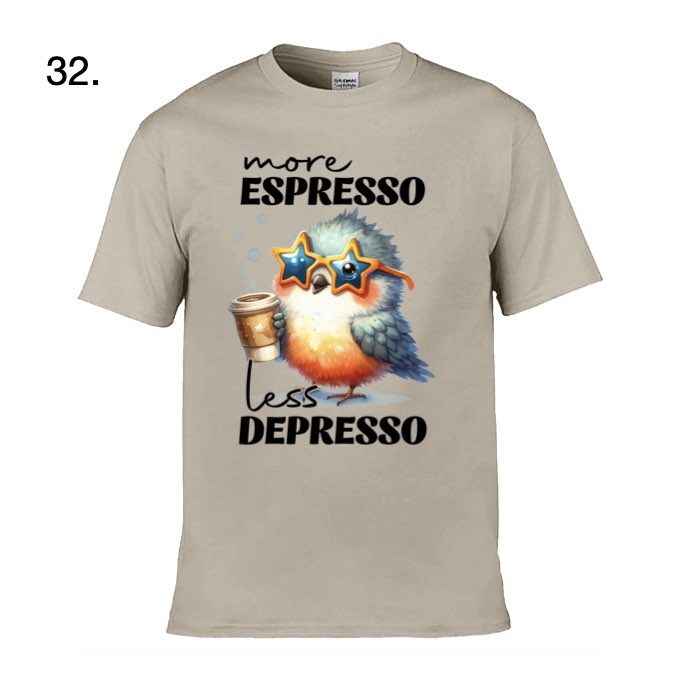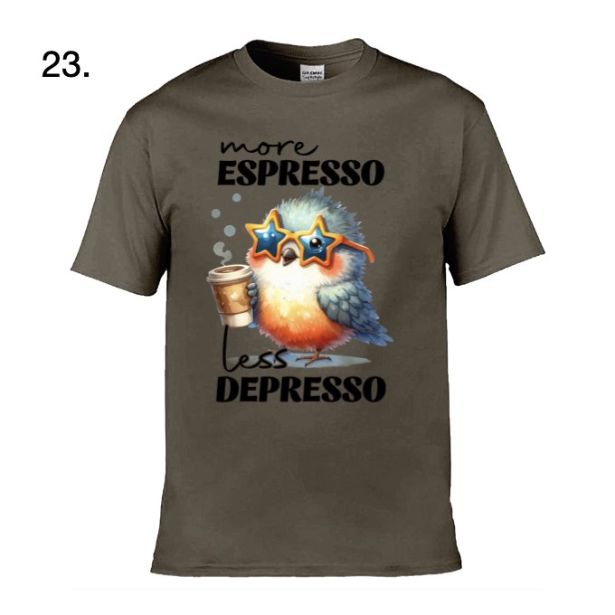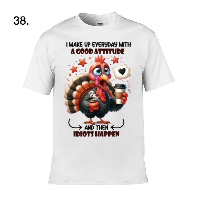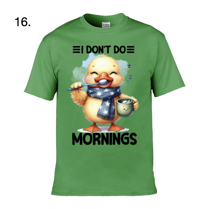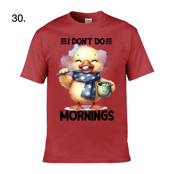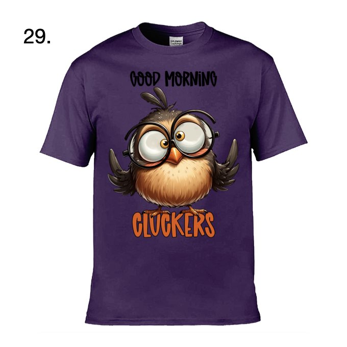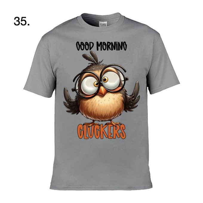 T-Shirt Colour: There are 38 colours available but only 14 to choose from online, email for more information